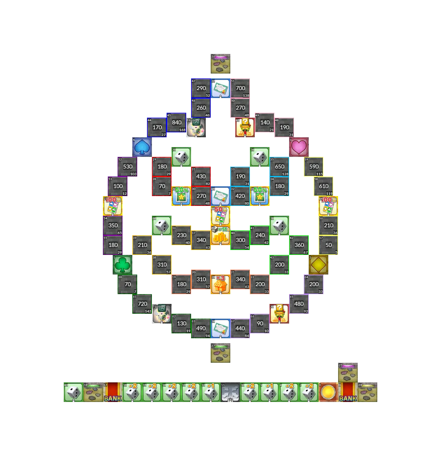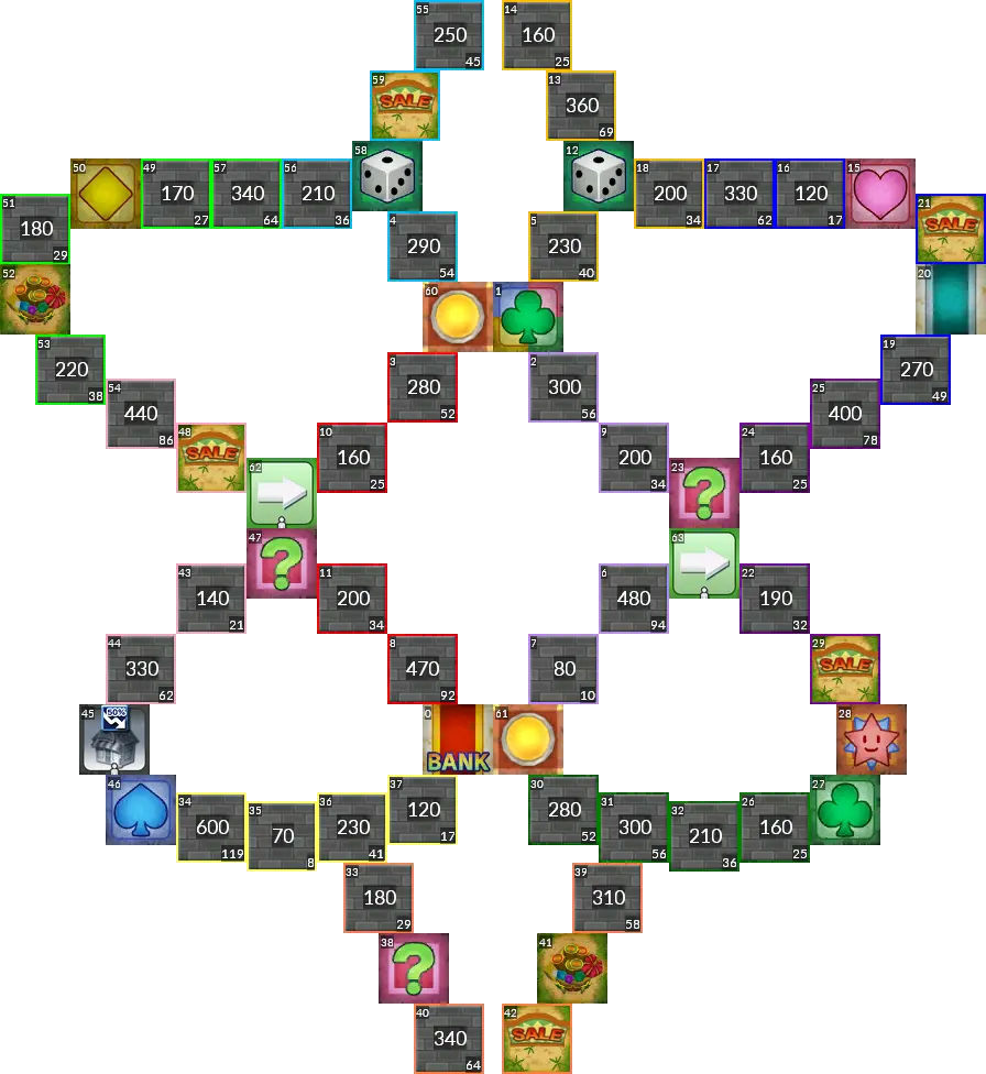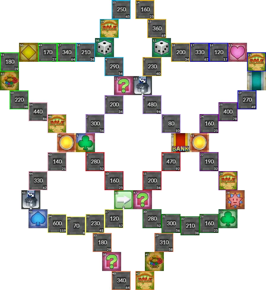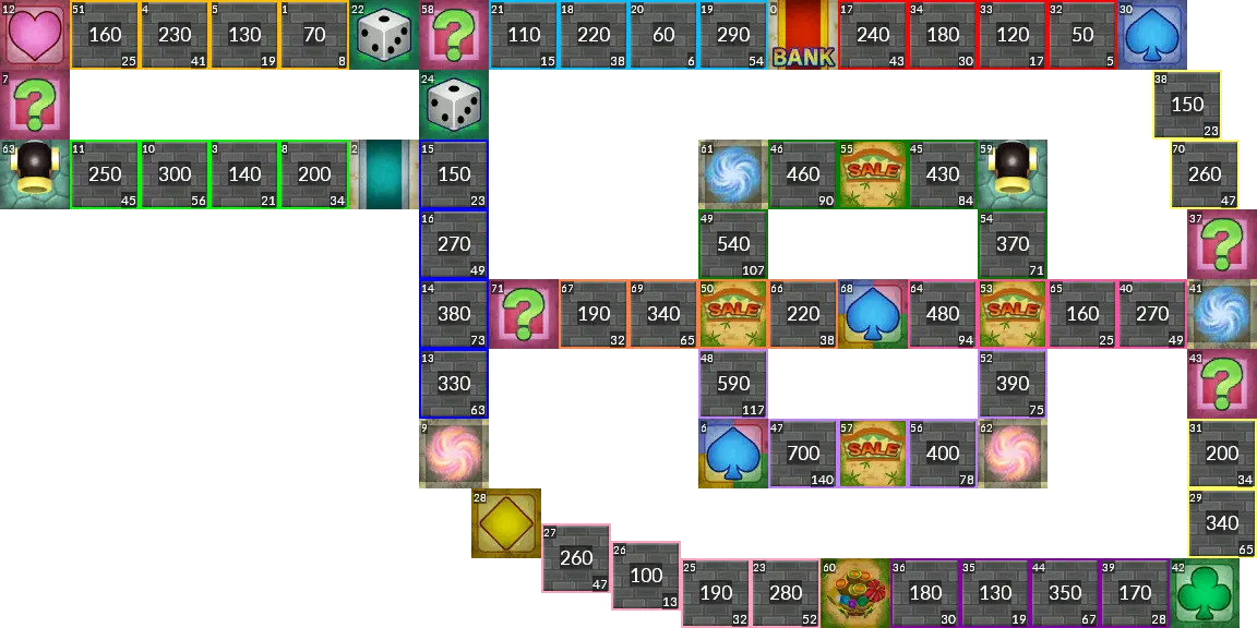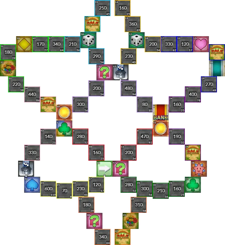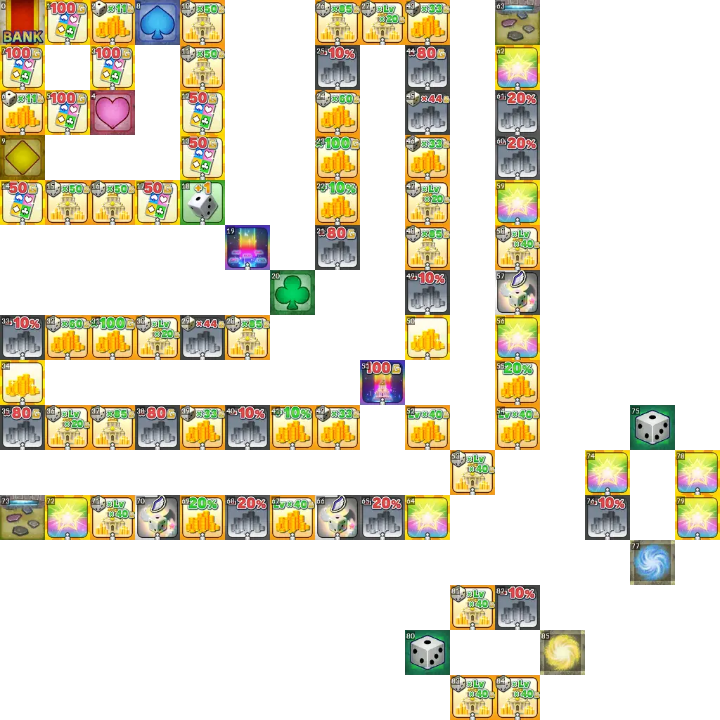 Sushi Train from Itadaki Street 3. The original board had switches which activate upon passing them, but since this isn't possible in Fortune Street Wii, this port uses normal switches instead. Easy mode port.