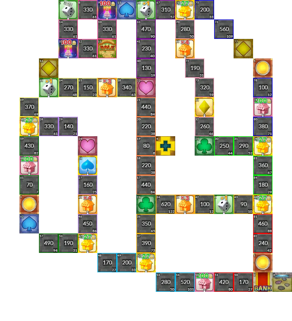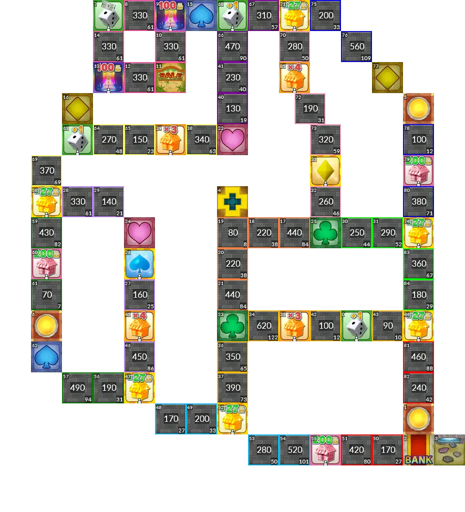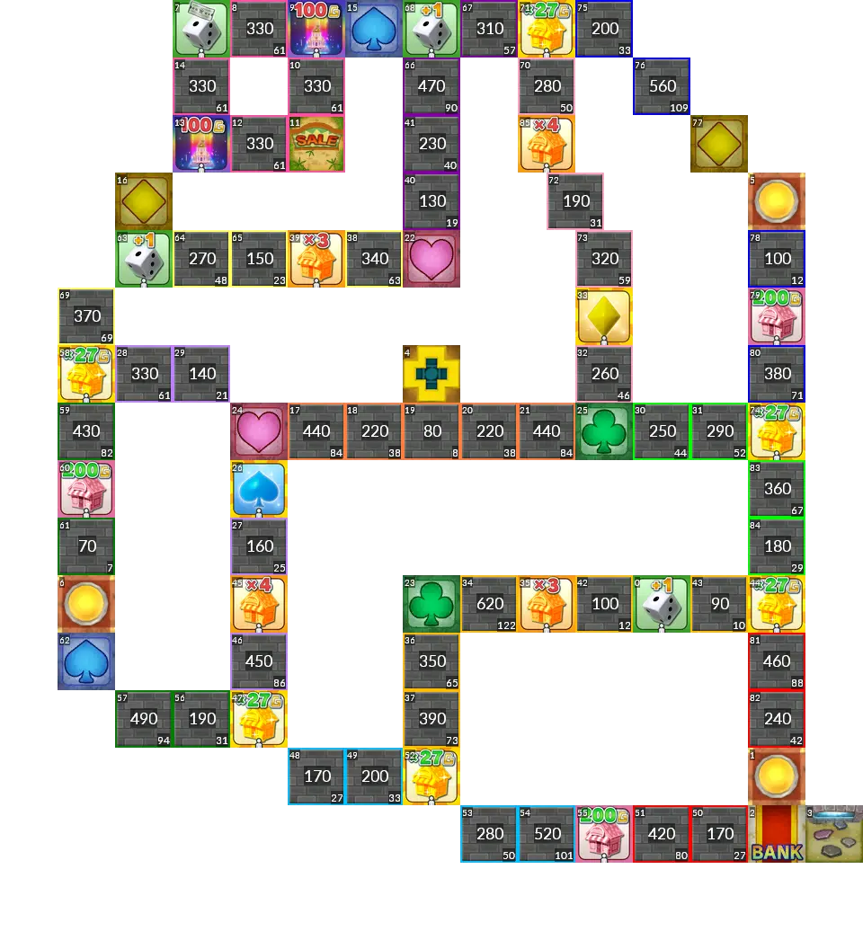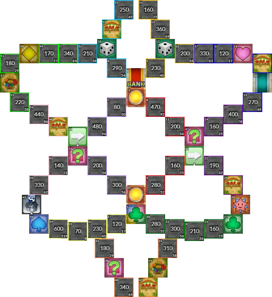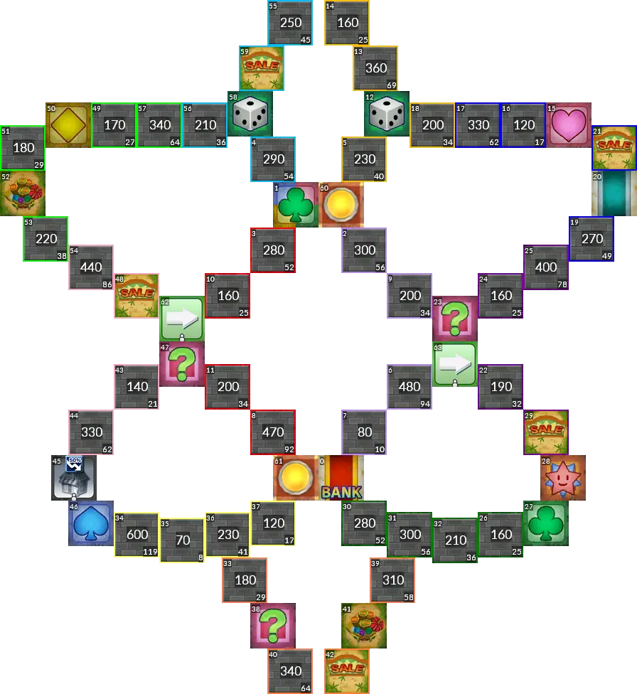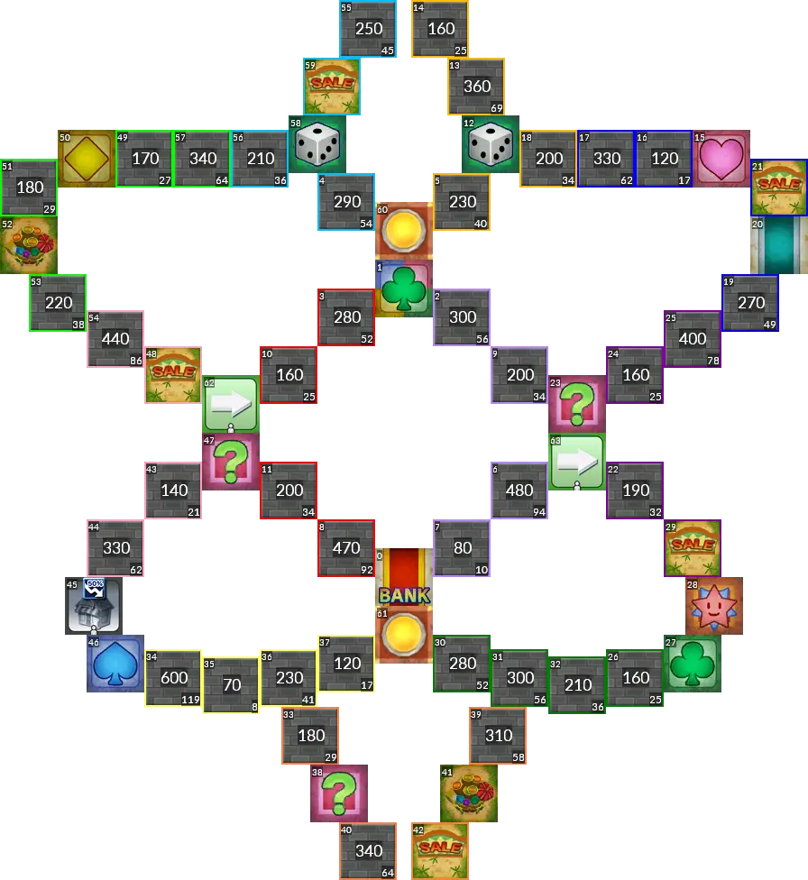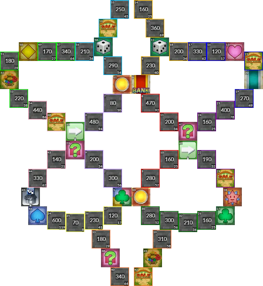 Sushi Train from Itadaki Street 3. The original board had switches which activate upon passing them, but since this isn't possible in Fortune Street Wii, this port uses normal switches instead. Easy mode port.