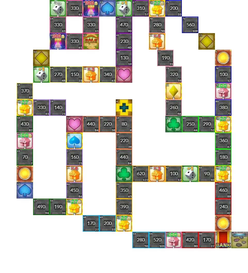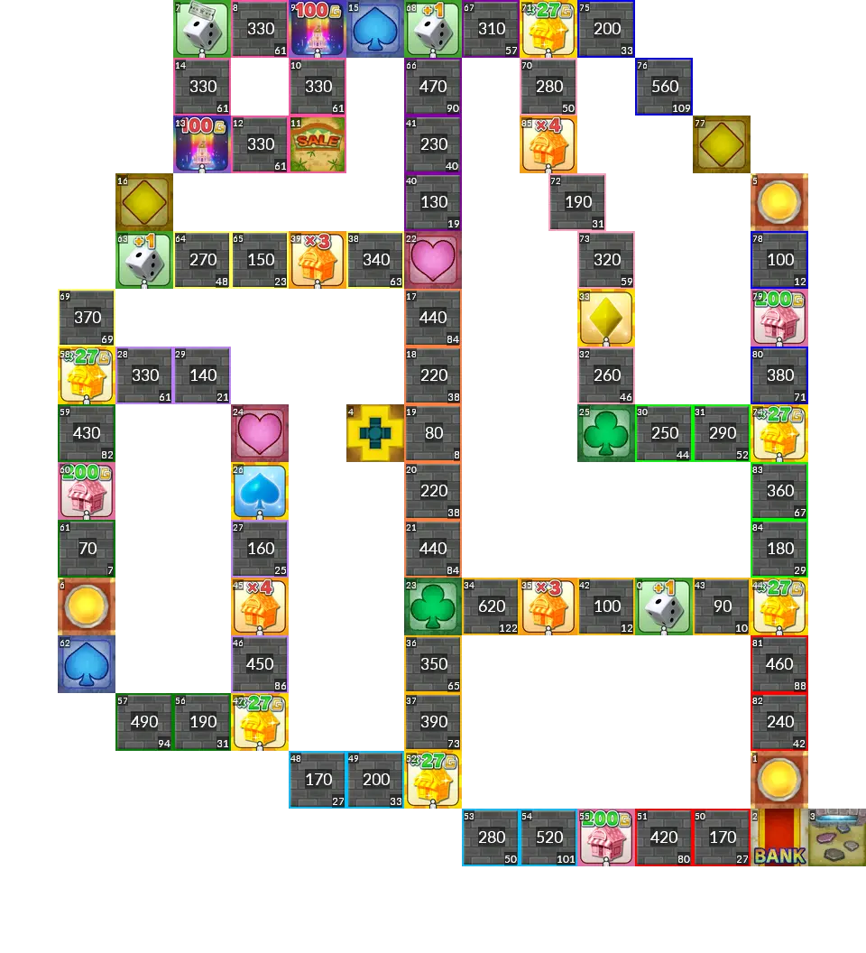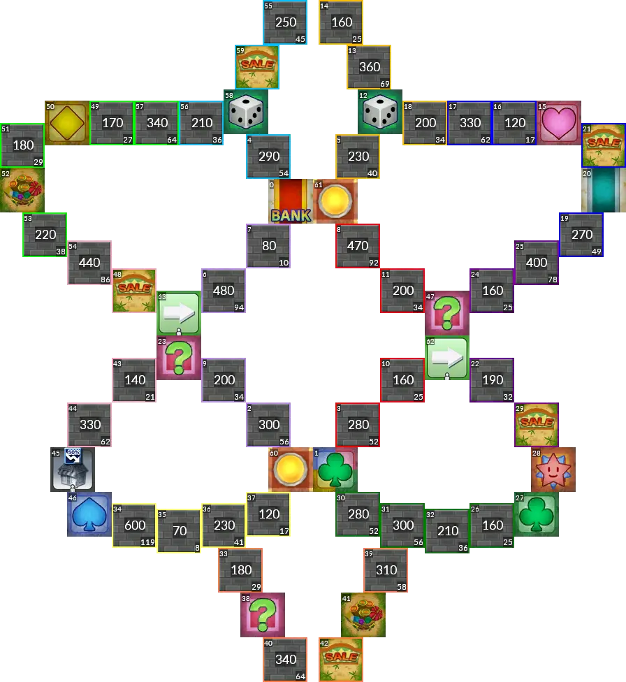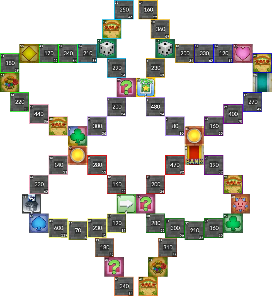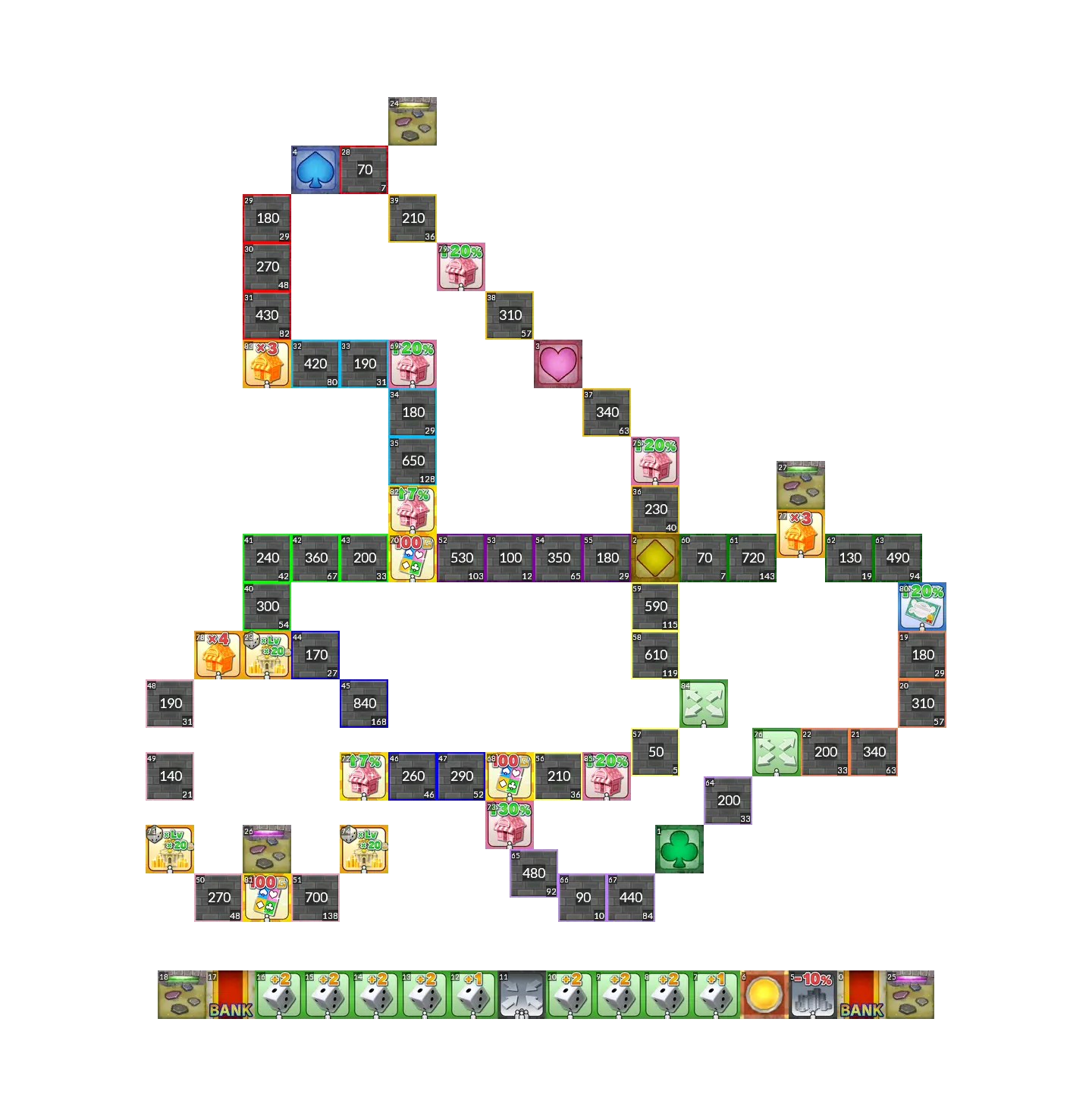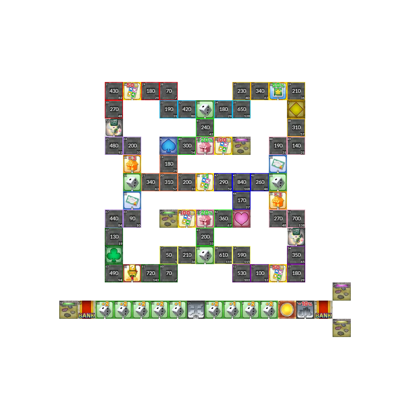 Sushi Train from Itadaki Street 3. The original board had switches which activate upon passing them, but since this isn't possible in Fortune Street Wii, this port uses normal switches instead. Easy mode port.
