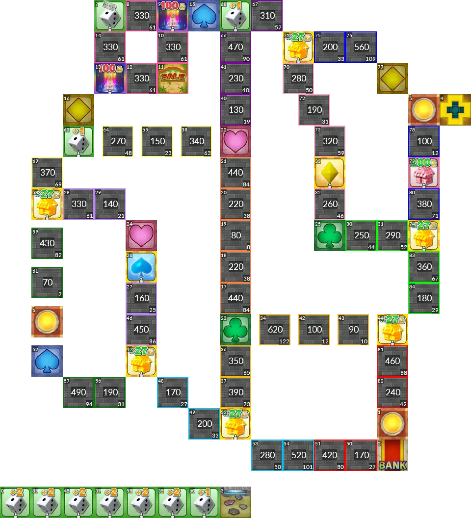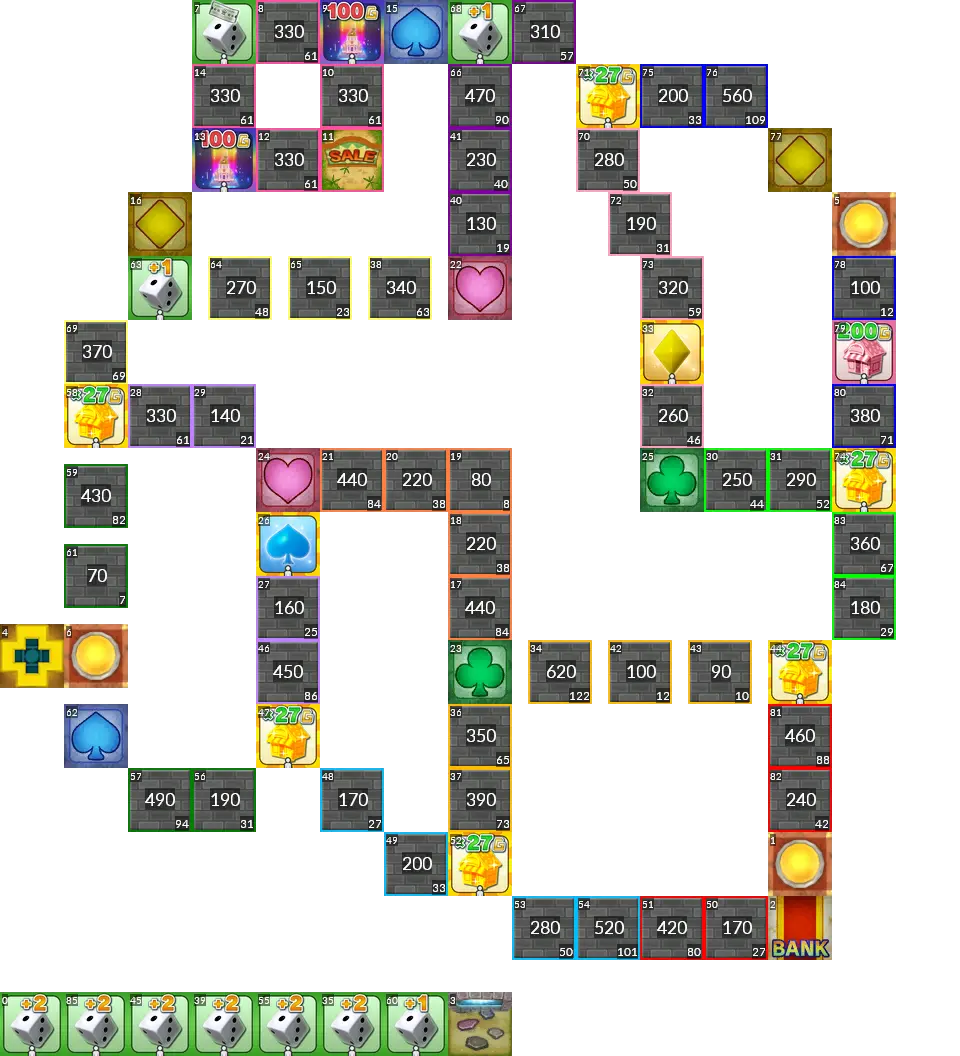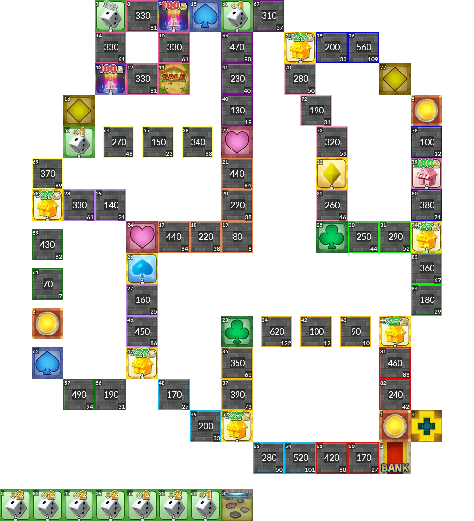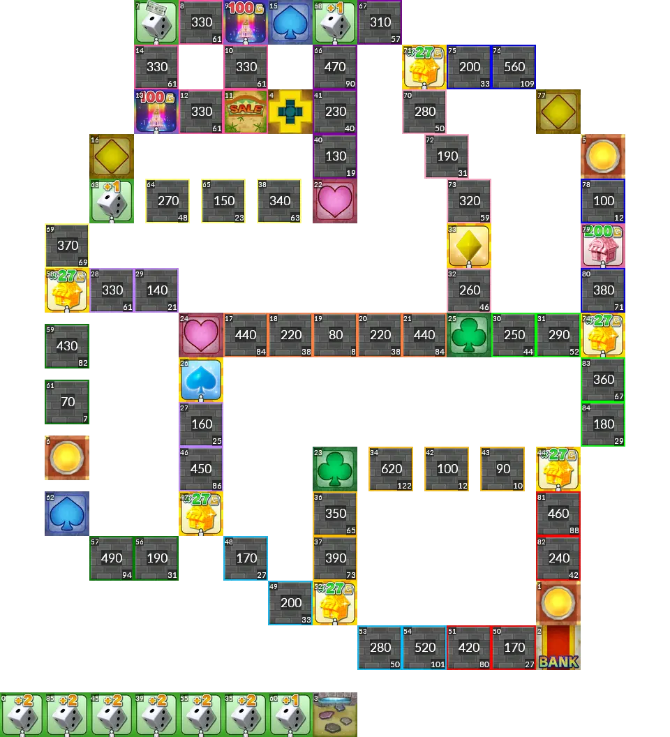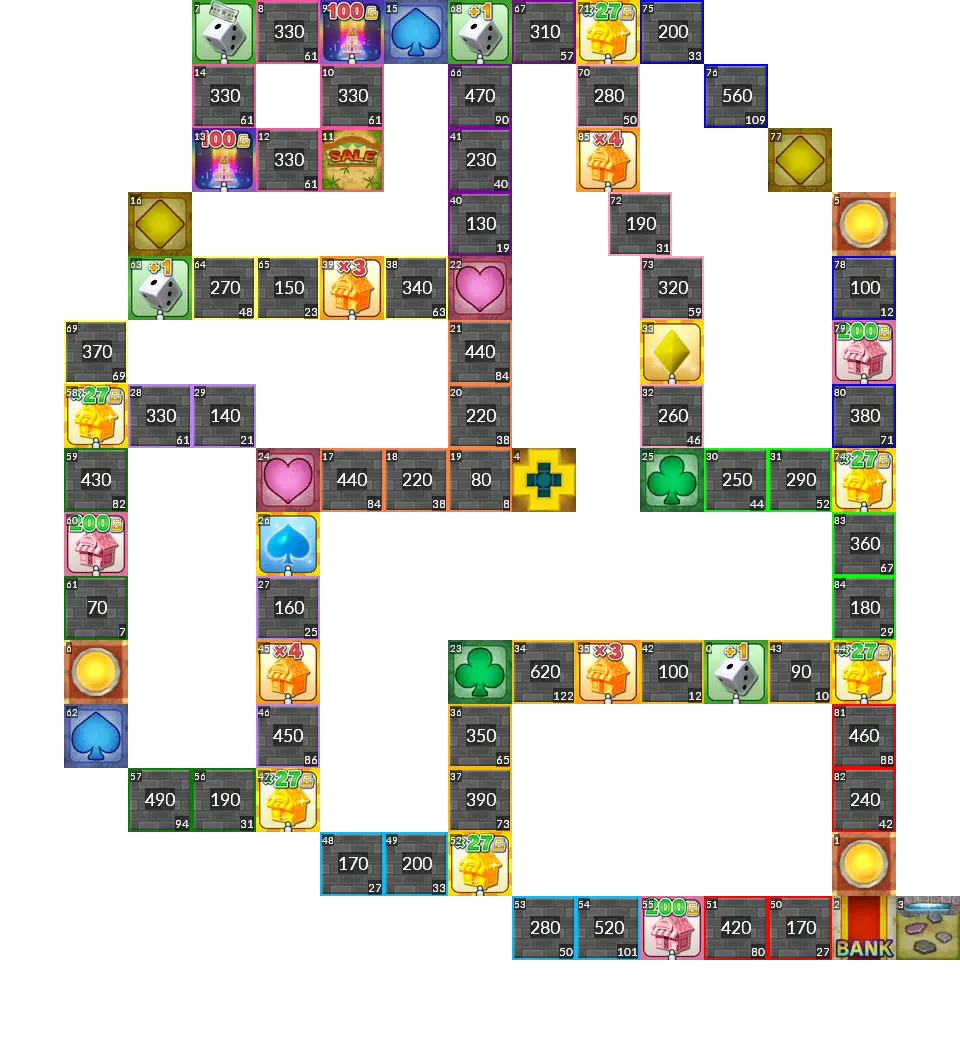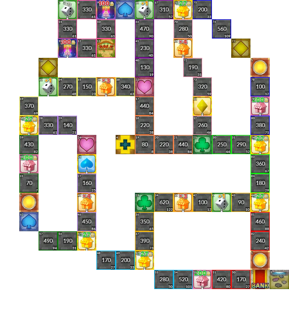 Sushi Train from Itadaki Street 3. The original board had switches which activate upon passing them, but since this isn't possible in Fortune Street Wii, this port uses normal switches instead. Easy mode port.