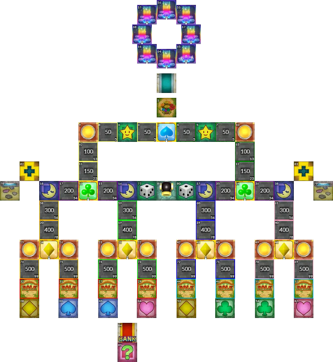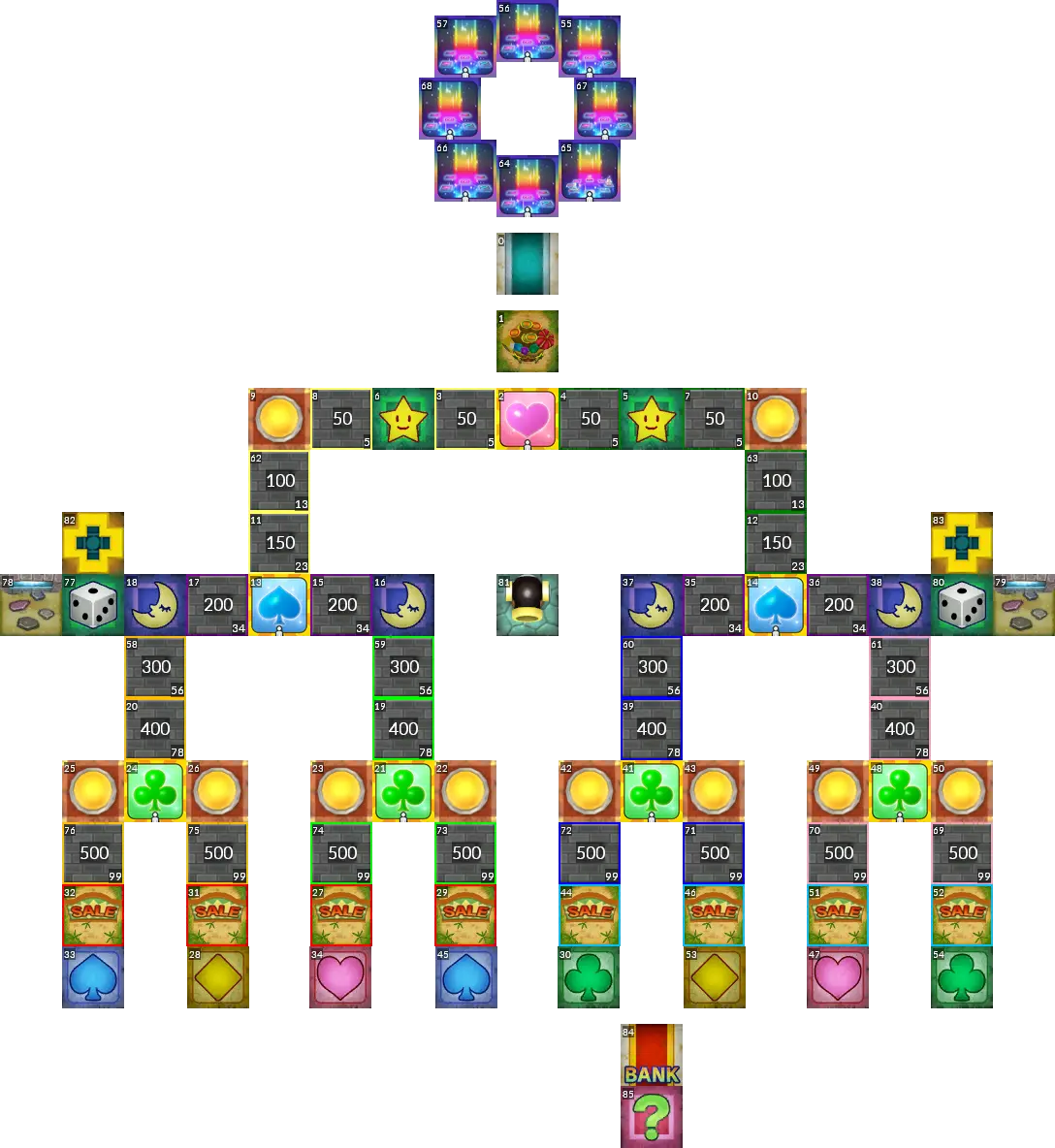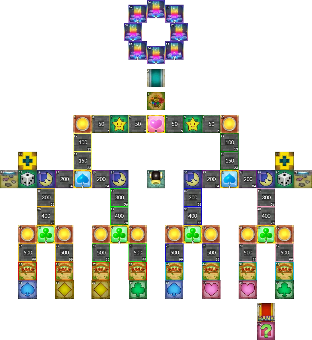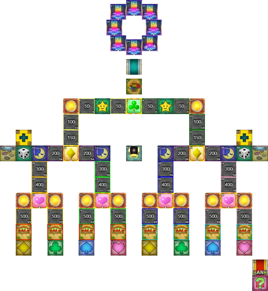 It will be a very long game. There are up to 93 board states. BackStreet warps to the front of the door. When the switch is pressed, the effect of the event square changes regularly. Every 4 times you press the switch, the effect of the event square is enhanced.
