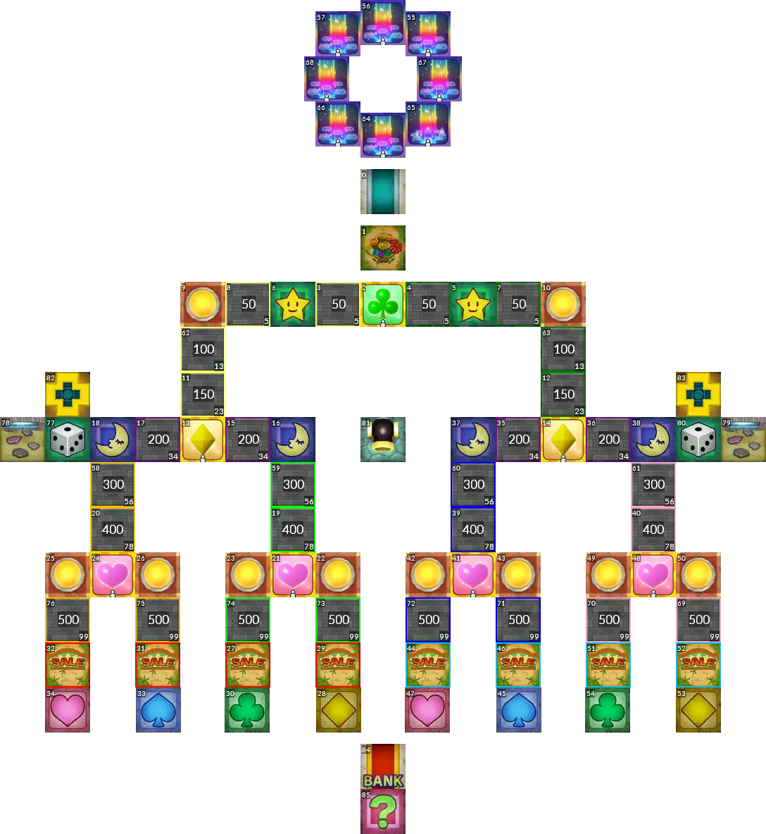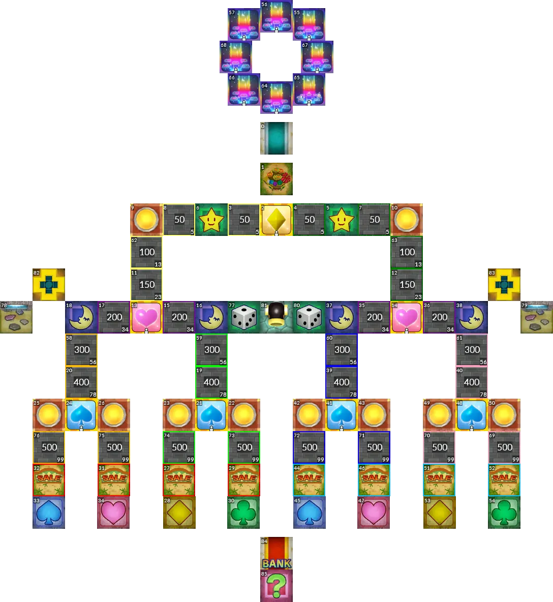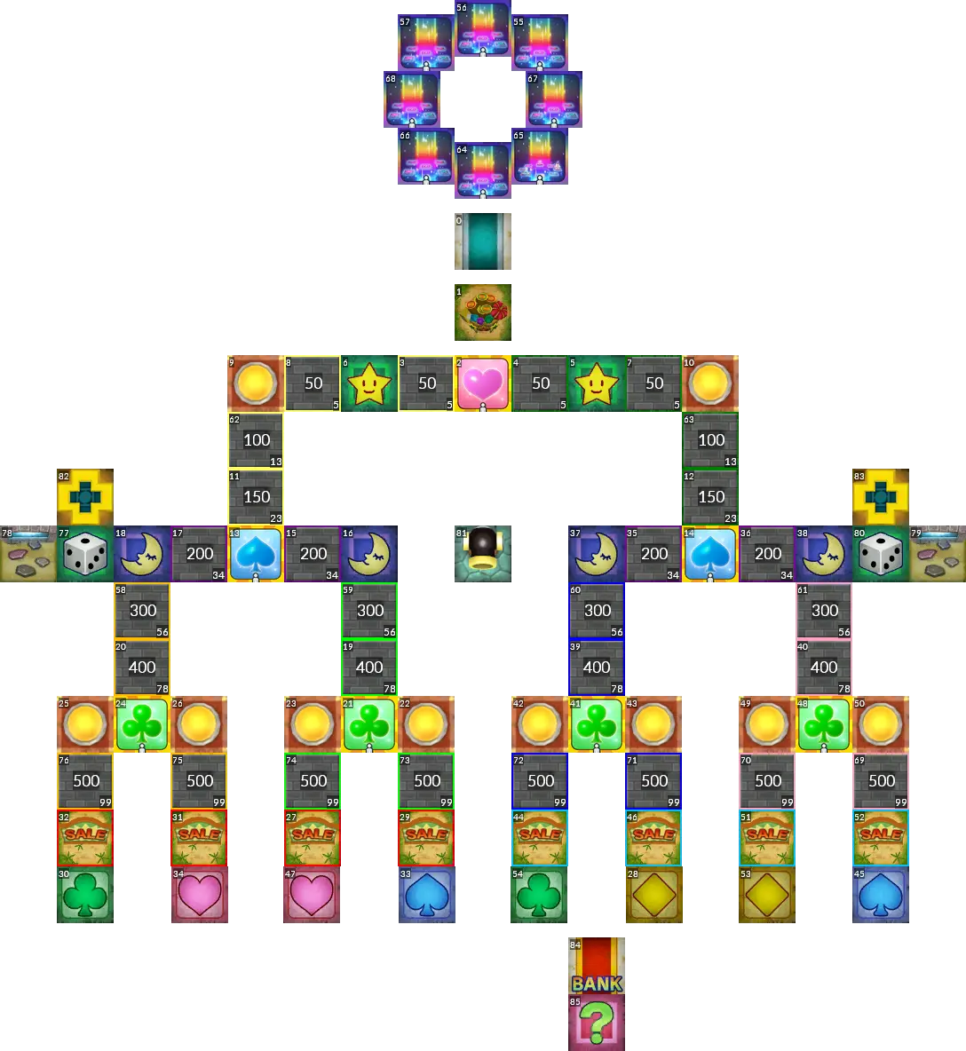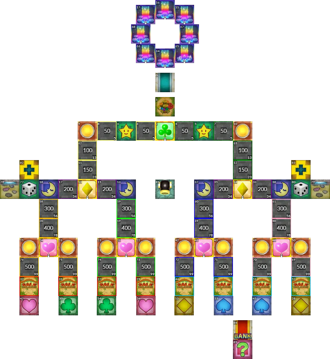 It will be a very long game. There are up to 93 board states. BackStreet warps to the front of the door. When the switch is pressed, the effect of the event square changes regularly. Every 4 times you press the switch, the effect of the event square is enhanced.