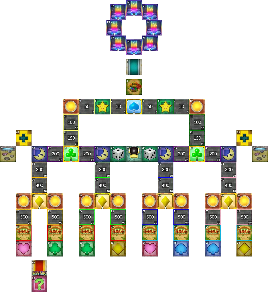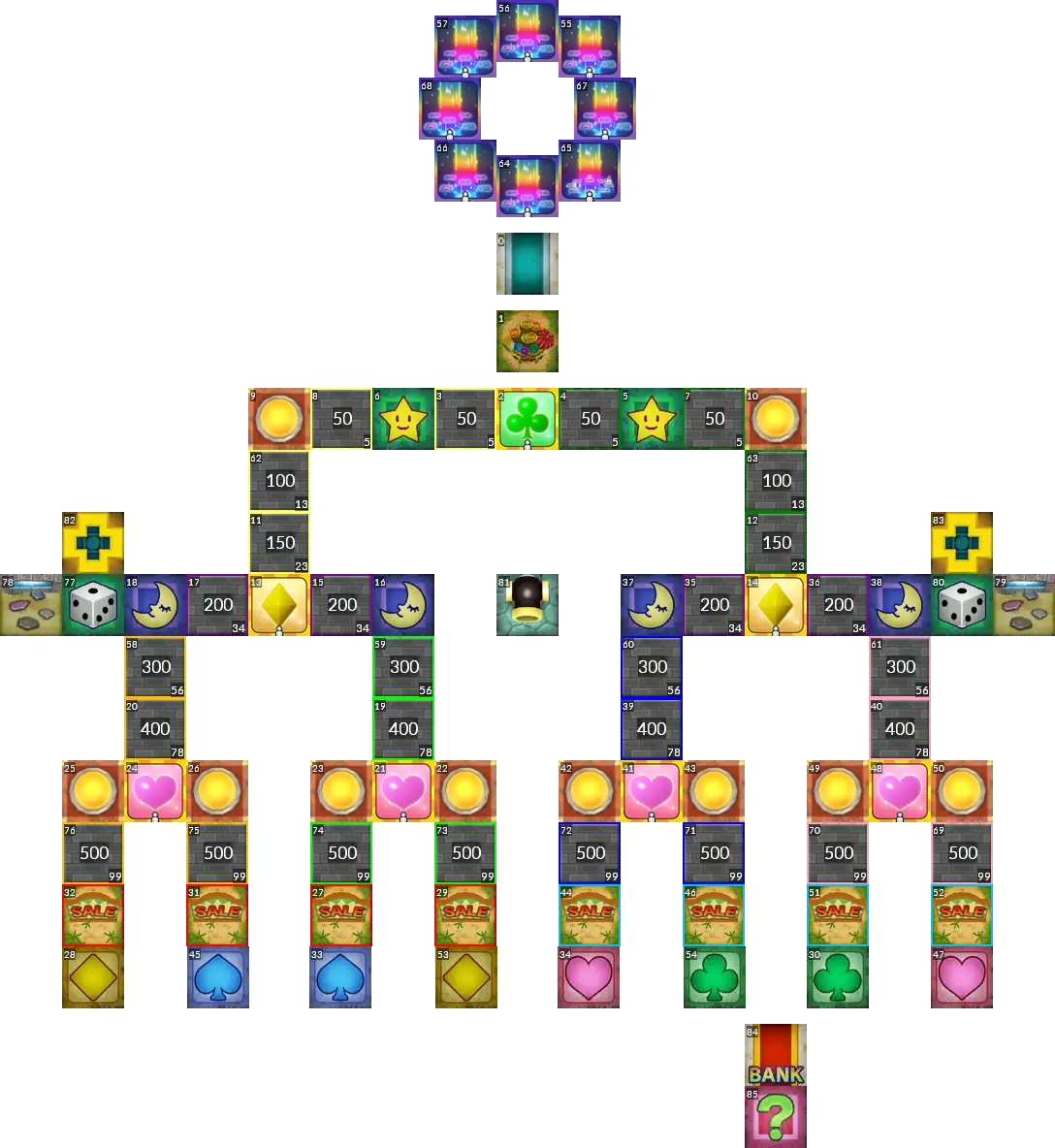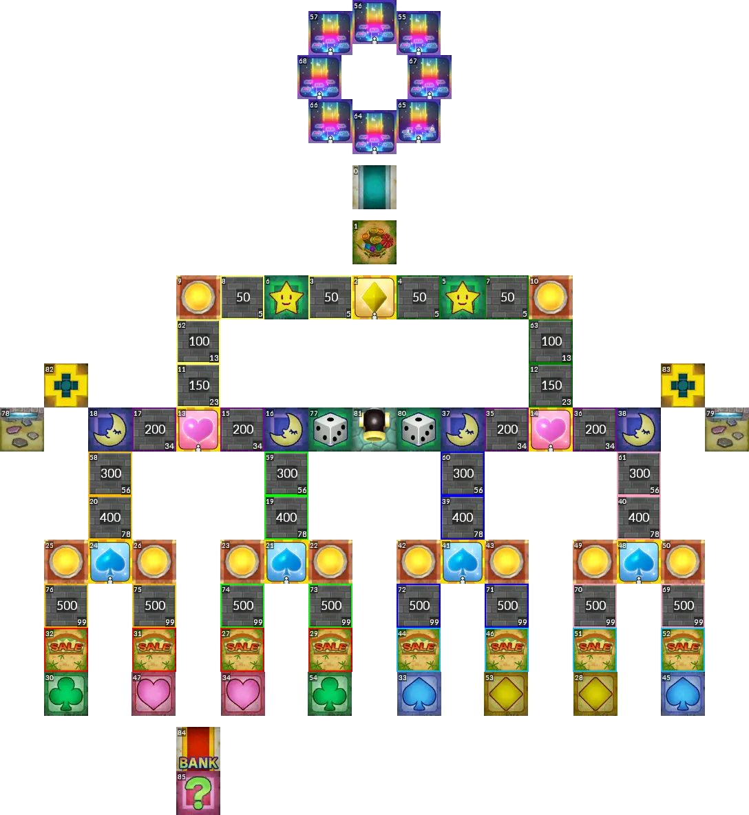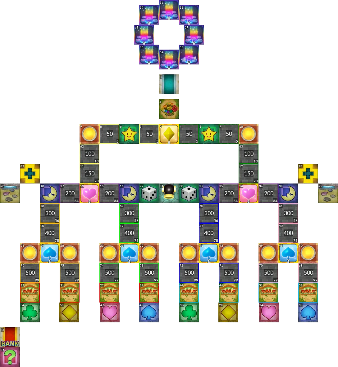 It will be a very long game. There are up to 93 board states. BackStreet warps to the front of the door. When the switch is pressed, the effect of the event square changes regularly. Every 4 times you press the switch, the effect of the event square is enhanced.