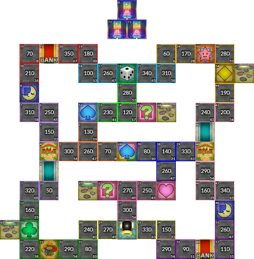 Originally from Itadaki Street Portable. Based on the location from the Dragon Quest series. A compact board with lots of variety and choices.
